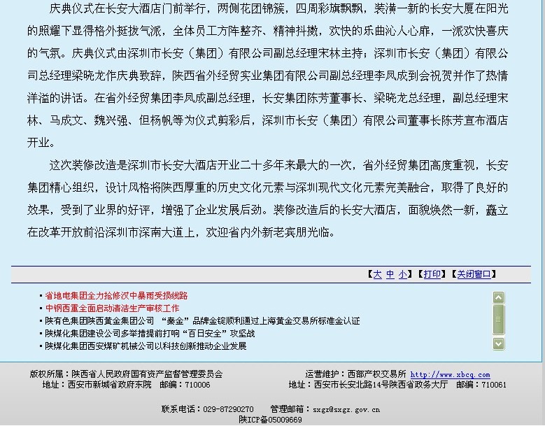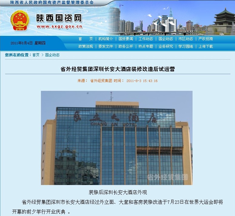 省國資網站登載我集團深圳長安大酒店裝修后試運營報道