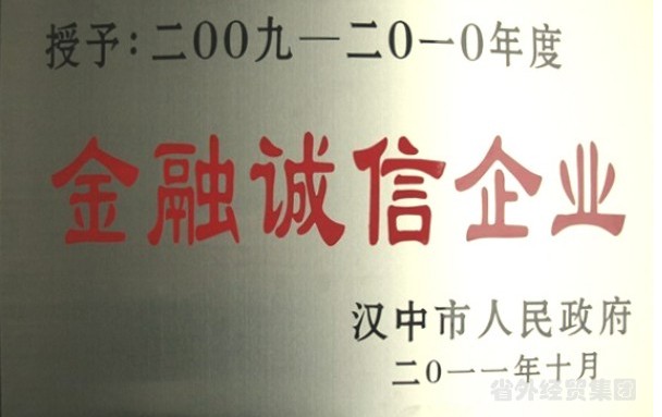 近日,在漢中市“金融誠信企業(yè)”評(píng)選活動(dòng)中,集團(tuán)所屬漢中市建筑工程總公司被漢中市政府授予“二OO九——二O一O年度金融誠信企業(yè)”