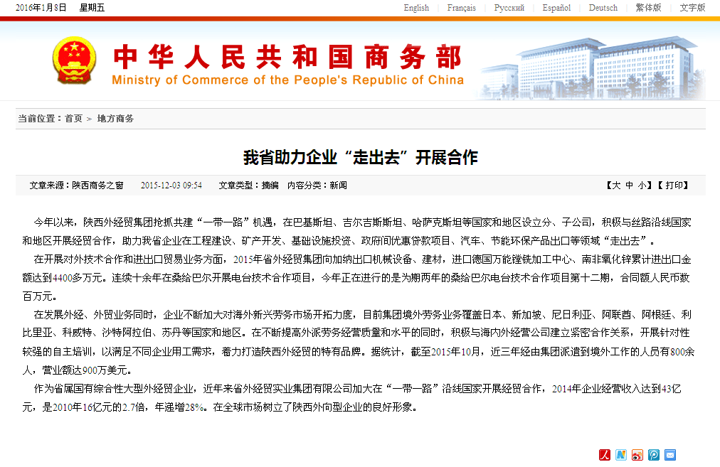 商務部網(wǎng)站刊登-----我省助力企業(yè)“走出去”開展合作