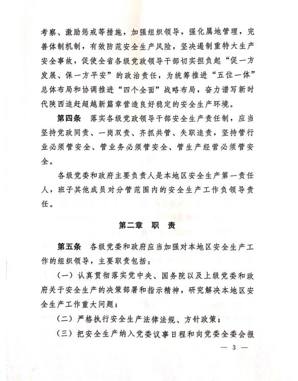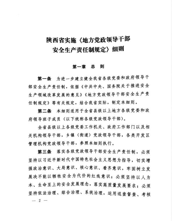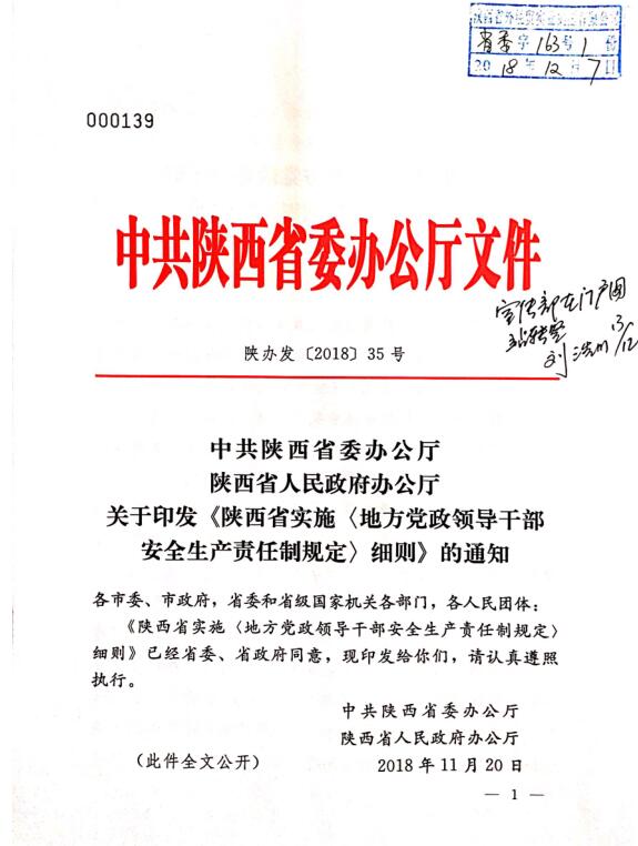 中共陜西省委辦公廳 陜西省人民政府關于印發《陜西省實施〈地方政府領導干部安全生產責任制規定〉細則》的通知