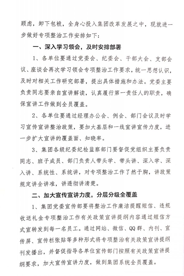 關于進一步做好違規收送禮金專項整治工作安排的通知