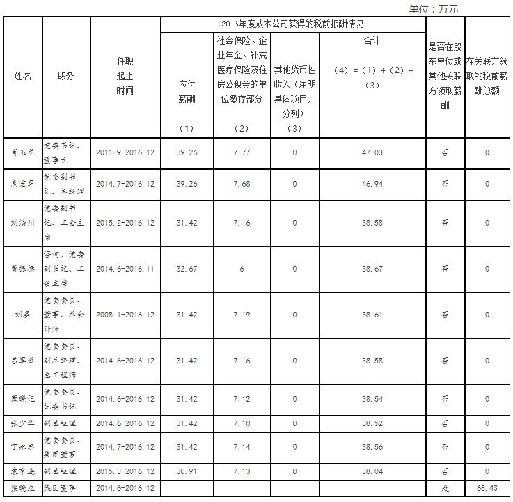 1.上表披露薪酬為我公司負責人2016年度全部應發稅前薪酬,按國家規定由單位繳存各種社會保險等。其中,第1項由省國資委核定。