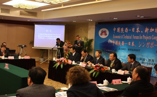 4月7日上午,作為十五屆西洽會的專題會議活動之一的,由陜西省商務廳主辦、我集團承辦的“中國陜西-日本、新加坡經濟技術合作項目對接會”在陜西省止園飯店舉行,來自新加坡、日本20多個團體、商會、組合、院校和100多位代表參加,陜西省人大常委會副主任張邁曾、陜西省商務廳、陜西省國資委、陜西省外辦、陜西省人社廳、陜西省貿促會等有關領導出席了活動。