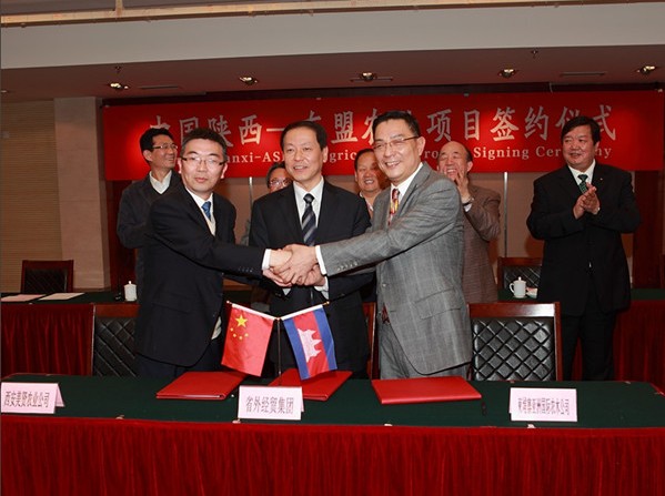 本次簽約以“互利合作,攜手發展”為主題。簽約項目結合柬埔寨振興國家農業規劃,按照熱帶經濟作物種植園的專業化產業技術要求,對柬埔寨國內三萬公頃原始森林進行全面改造。將其建成規模化、標準化、產業化的天然橡膠園、棕櫚園、木薯種植基地及其他經濟作物園林,并在此基礎上,開展農產品品種選育、進出口、技術引進等方面交流合作,特別是將陜西省楊凌農業高科技產業示范區的農業高科技成果引入包括柬埔寨在內的東南亞各國,積極促成陜西-東盟農業高科技基地的建設,力求最終在柬埔寨國內建設和運營具有示范意義的新型森林資源改造和農業開發項目。該項的實施,將成為陜西省乃至西北省份最大的農業合作項目。同時,本項目也將整合項目所在地的優勢旅游資源,開發具有熱帶風情的森林及農業特色旅游線路。積極引領陜西企業大步“走出去”。