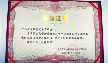 陜外集團陜海投公司榮獲2023年度陜西省國際交流優秀案例推薦單位